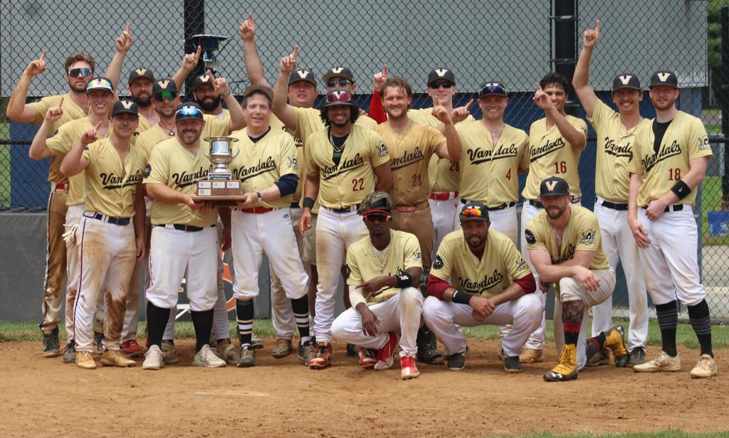 their Championship Series versus the defending Champion Arlington Mallards! J. Spencer went a strong 7 for the boys in black & gold, allowing 2 hits and K'ing 4, picking up the 'W'. T. Heltibridle 'hurled' his way to a save. Vandals Skipper N. Rogers helped the cause with 2 RBI and a towering shot over the Left Field double wall in the 9th. Mallards' J. Senator went the distance for the DUCCS, K'ing 10 in a strong CG effort. Vandals' J. Sara was named series MVP for his game #1 heroics, and game #2 winning performance on the bump. Winning the Kulwicki Cup culminates an impressive 18 game winning streak for the Vandals that began on May 10th after a slow start to the season. This marks the Vandals first DC WOOD Championship as a Franchise - CONGRATULATIONS VANDALS on winning the top title in all of local adult baseball! Kudos to the Arlington Mallards on another great season which saw them win the Capital Division title and appear in their 5th consecutive DC WOOD Championship series! #DCWOODBASEBALL #ChampionshipSunday #Vandalsculture